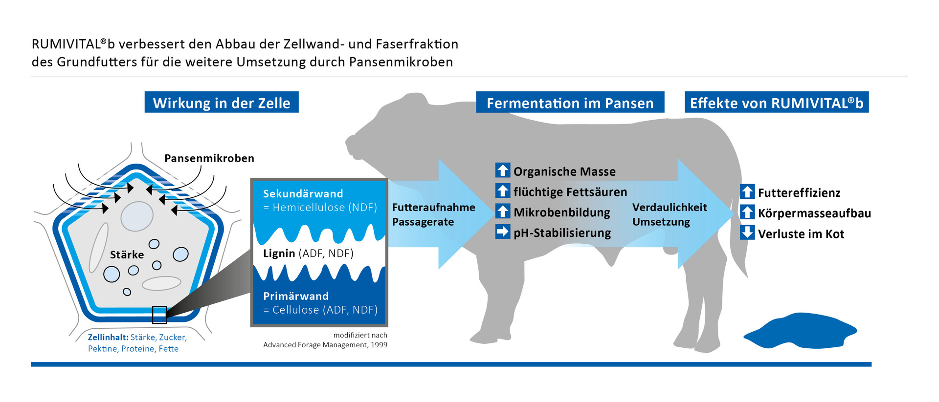 RUMIVITAL®b poboljšava razgradnju stanične stijenke i frakcije vlaknine osnovne krme za daljnju pretvorbu mikrobima buraga
